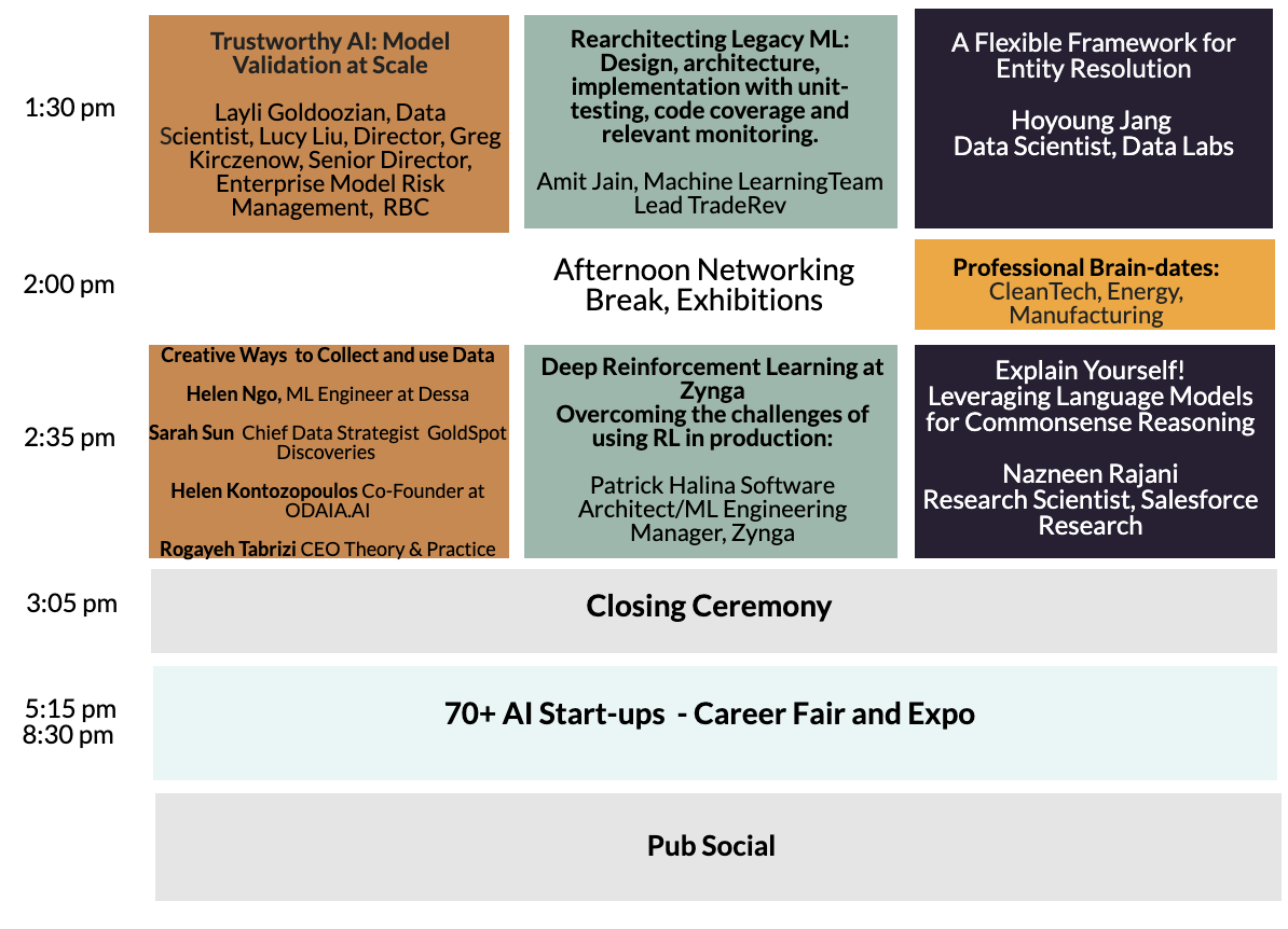 - Description: Choosing which AI projects to invest in can be a daunting task. How do Layer6’s capabilities fit within TD bank? How does ML research get rolled into products at National Bank of Canada? How is Hudson’s Bay Company selecting the AI projects to build out? How has advanced research from Toronto’s Machine Learning Group help clients at Deloitte?